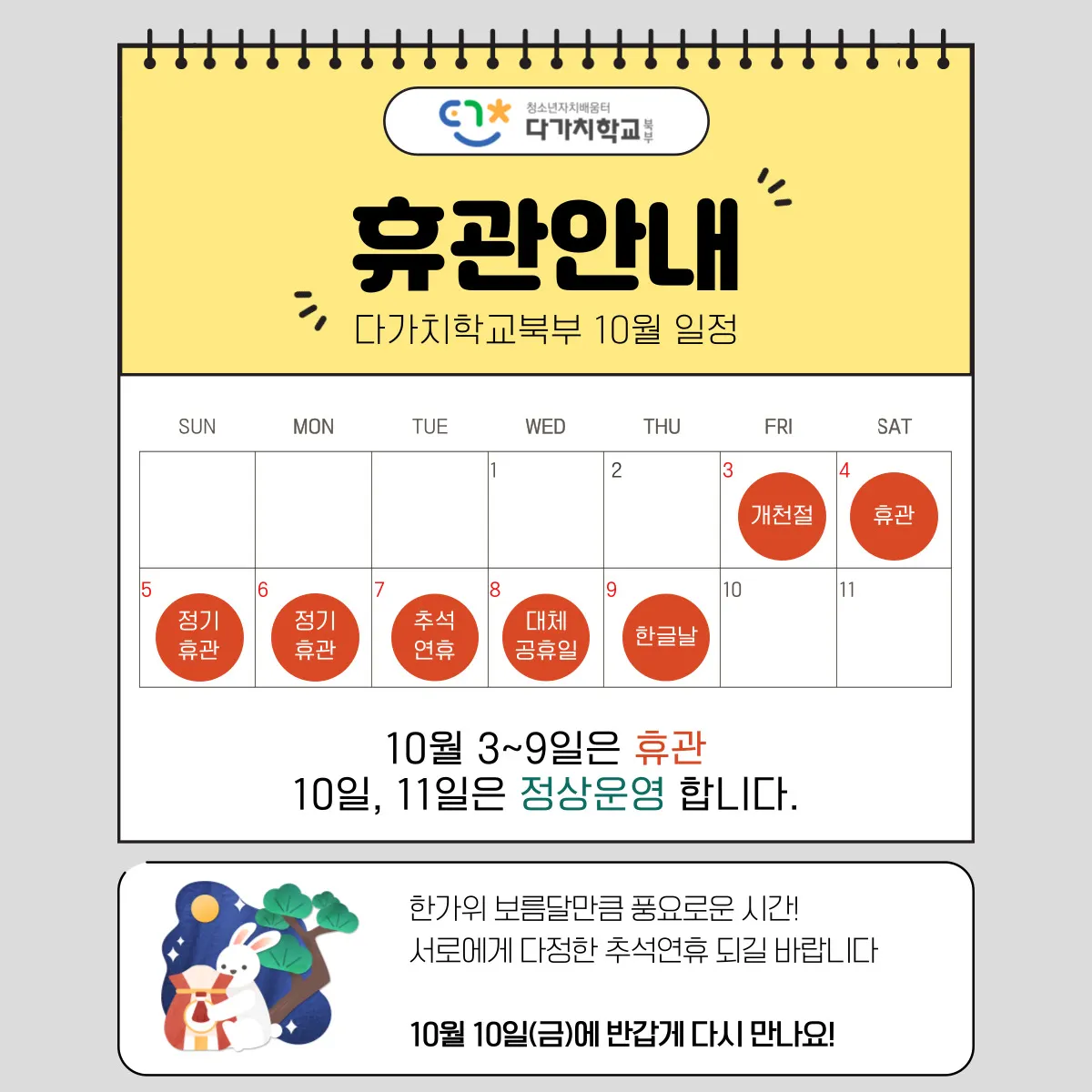 다가치학교 북부! 10월의 운영일정을 확인하고 방문에 참고해주세요!