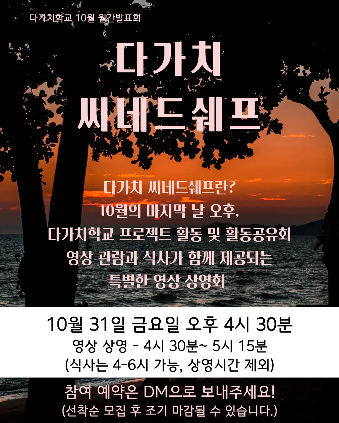 다가치 씨네드쉐프란? 10월의 마지막 날 오후, 다가치학교 프로젝트 활동 및 활동공유회 영상 관람과 식사가 함께 제공되는 특별한 영상 상영회