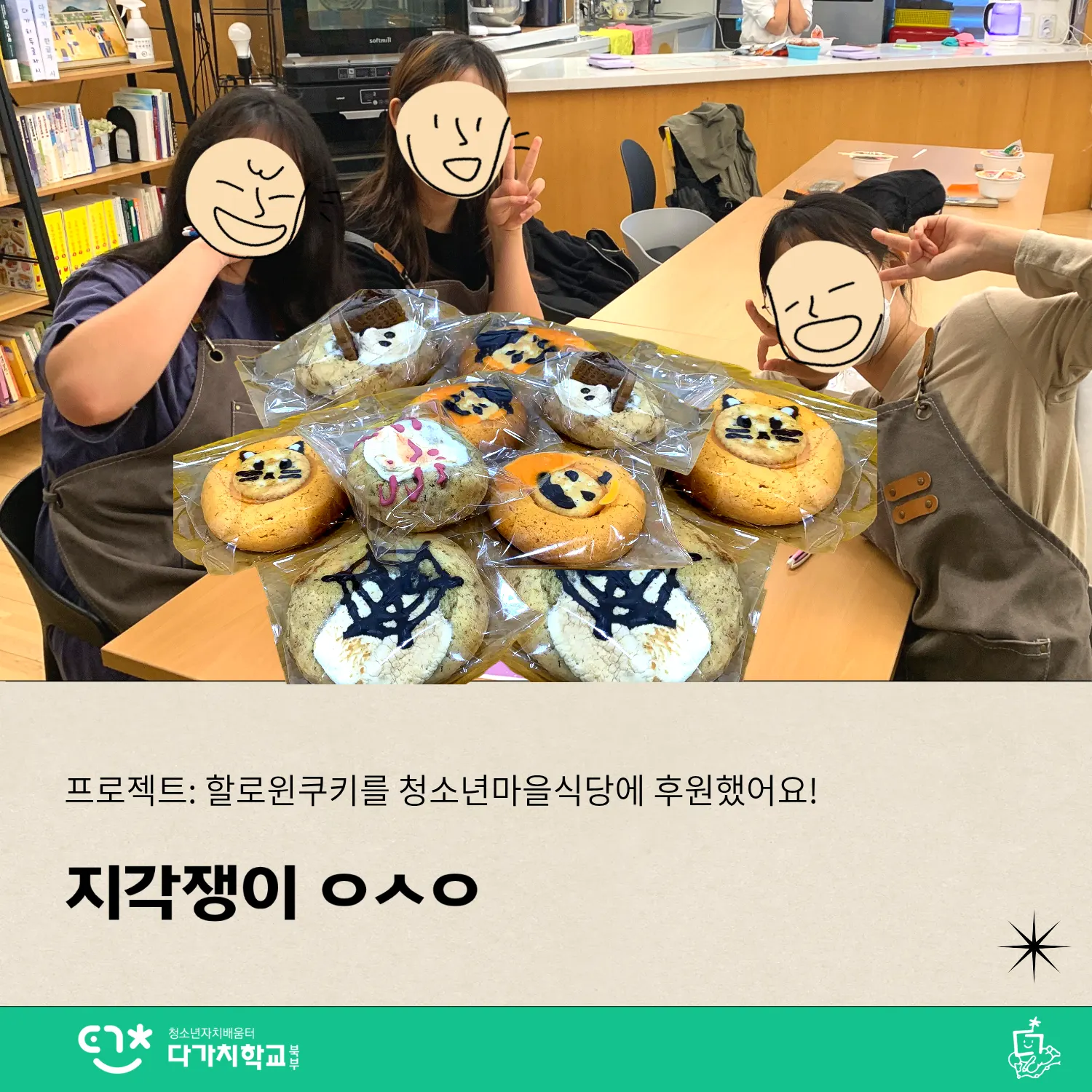 [베이킹 프로젝트: 지각쟁이 ㅇㅅㅇ] 할로윈쿠키를 청소년마을식당에 후원했어요!
