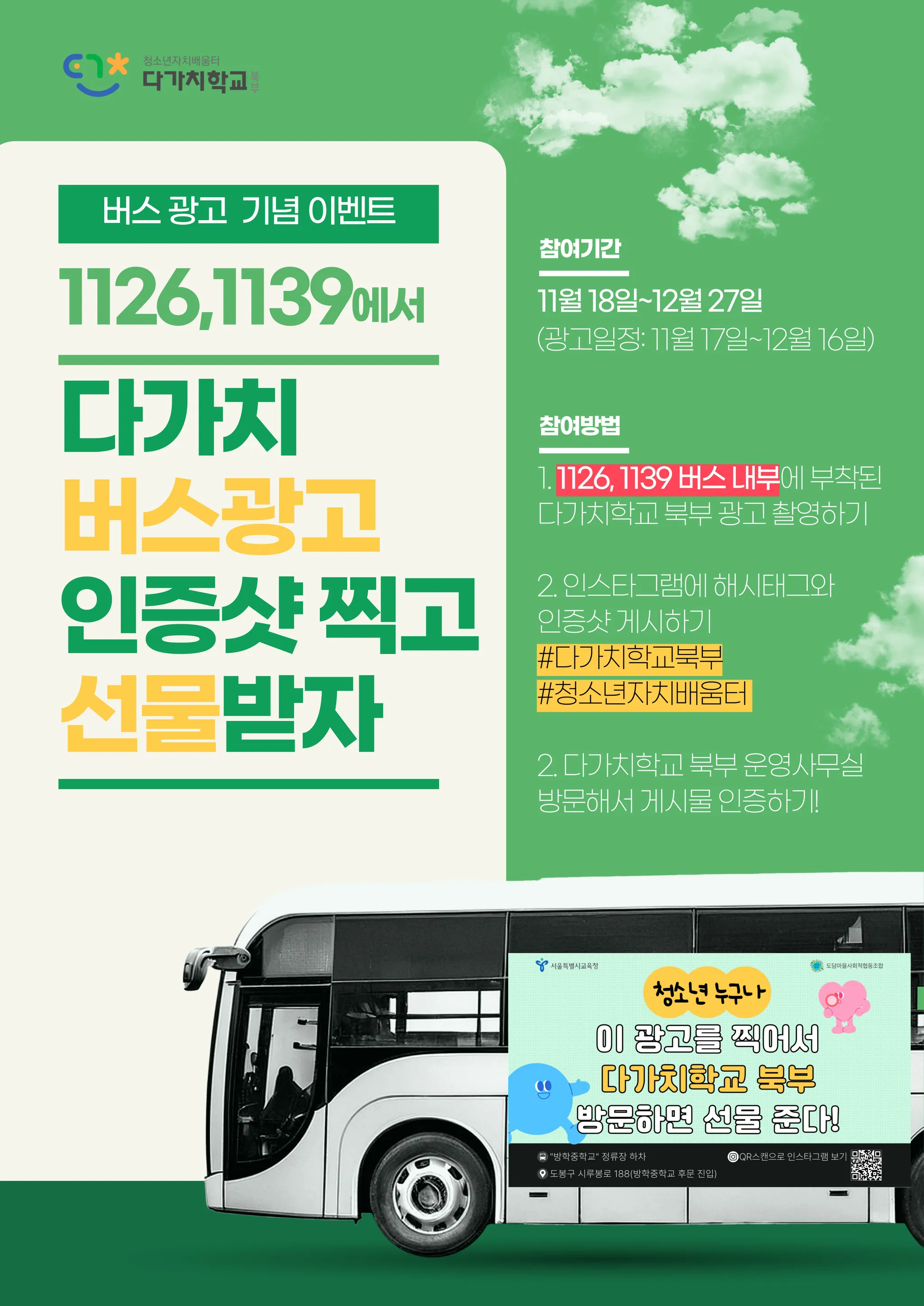 다가치 버스광고 인증샷 찍고 선물받자 (11/18~12/27)