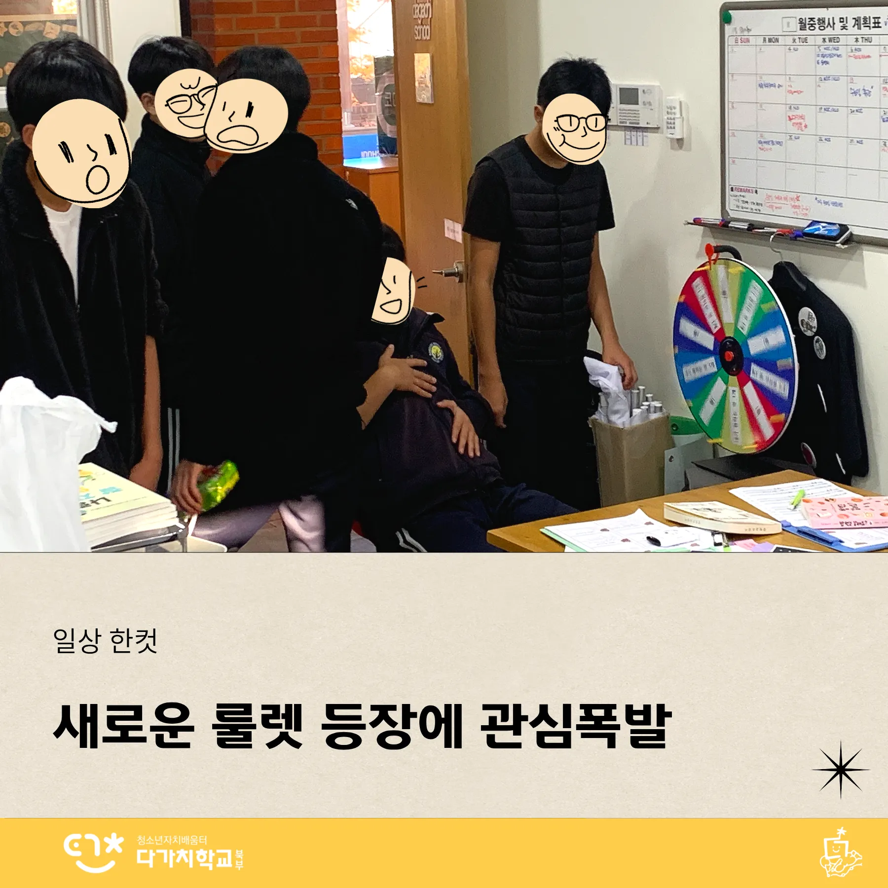 다양한 청소년들이 서로 다른 색으로 울긋불긋 다가치를 물들인 시간이었습니다.