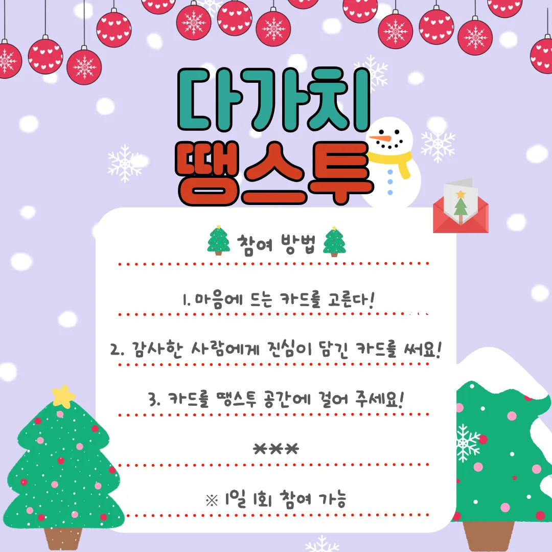 다가치에 오면 매일 1회 참여할 수 있는 12월 매일 이벤트를 소개합니다!