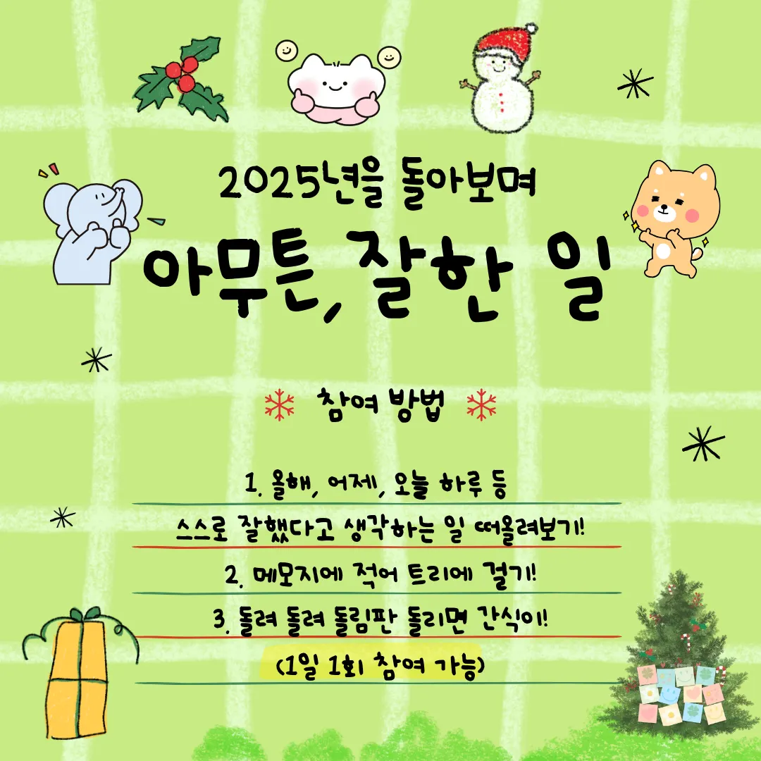 2025년을 돌아보며 아무튼,잘한 일 : 올해, 어제, 오늘 하루 등 스스로 잘했다고 생각하는 일로 다가치 트리를 함께 만들어요