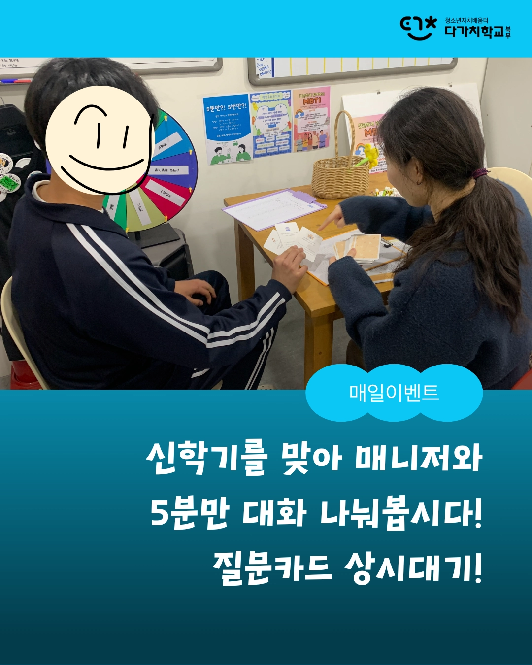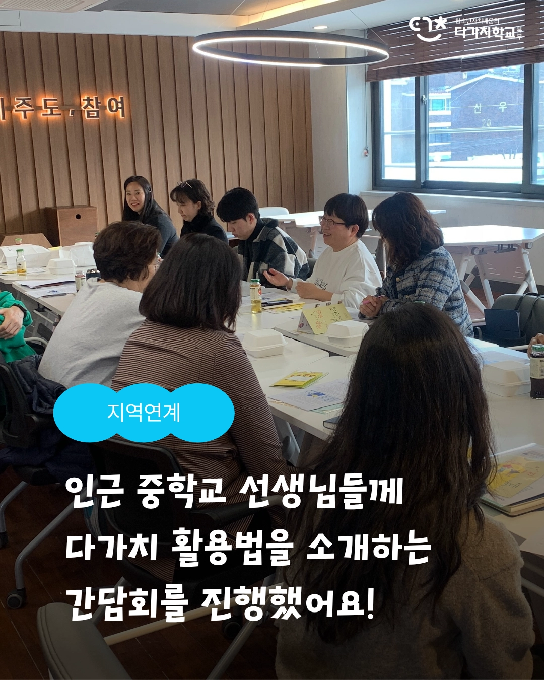 다가치와 중학교 간의 대화도 있었습니다. 다가치가 더 많은 청소년들에게 닿기 위해서! 서울 북부의 중학교를 초청하여 다가치 활용법을 안내하는 간담회를 가졌습니다.